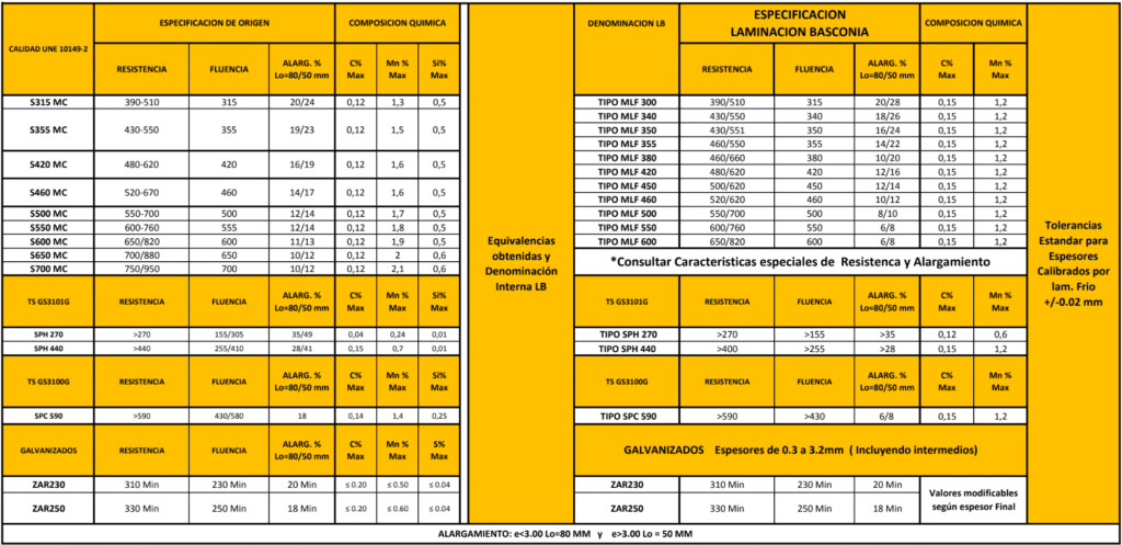 - Durezas desde 40 HrB hasta 95 HrB (según espesor y calidad solicitada)